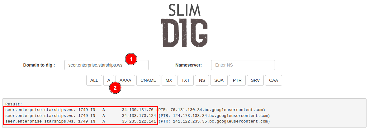 Running a DNS lookup should now reflect all active hosts: