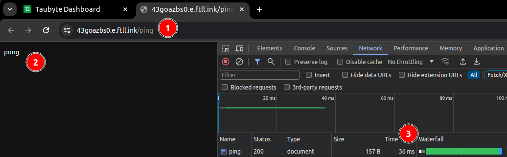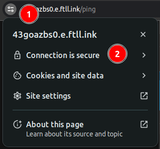 The icing on the cake is the seamless handling of TLS certificates by the Taubyte cloud, automatically procured from Let’s Encrypt. This ensures your function endpoints are not only operational but secure. To appreciate this automated security enhancement, (1) click on the padlock icon located to the left of the URL, then (2) verify the connection’s security status.