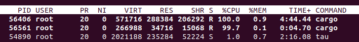For those with access to their nodes, a top command execution is enlightening. It allows you to witness firsthand which node is executing the build job, identifiable by the cargo process’s appearance at the forefront of system resource consumption.