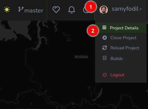 For more details, (1) click on your avatar icon then (2) select Project Details.
