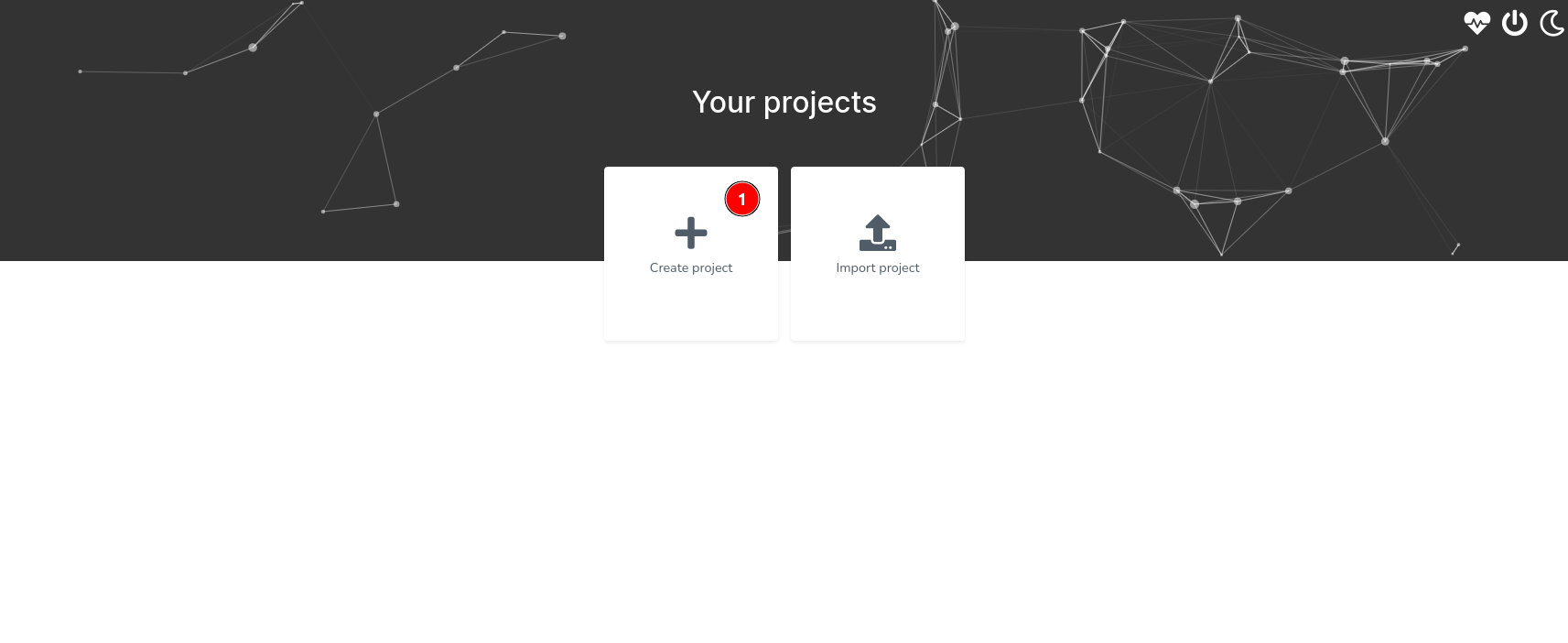 Once logged in, you’ll land on the projects page. Here, (1) click on the “+” button to initiate a new project creation.