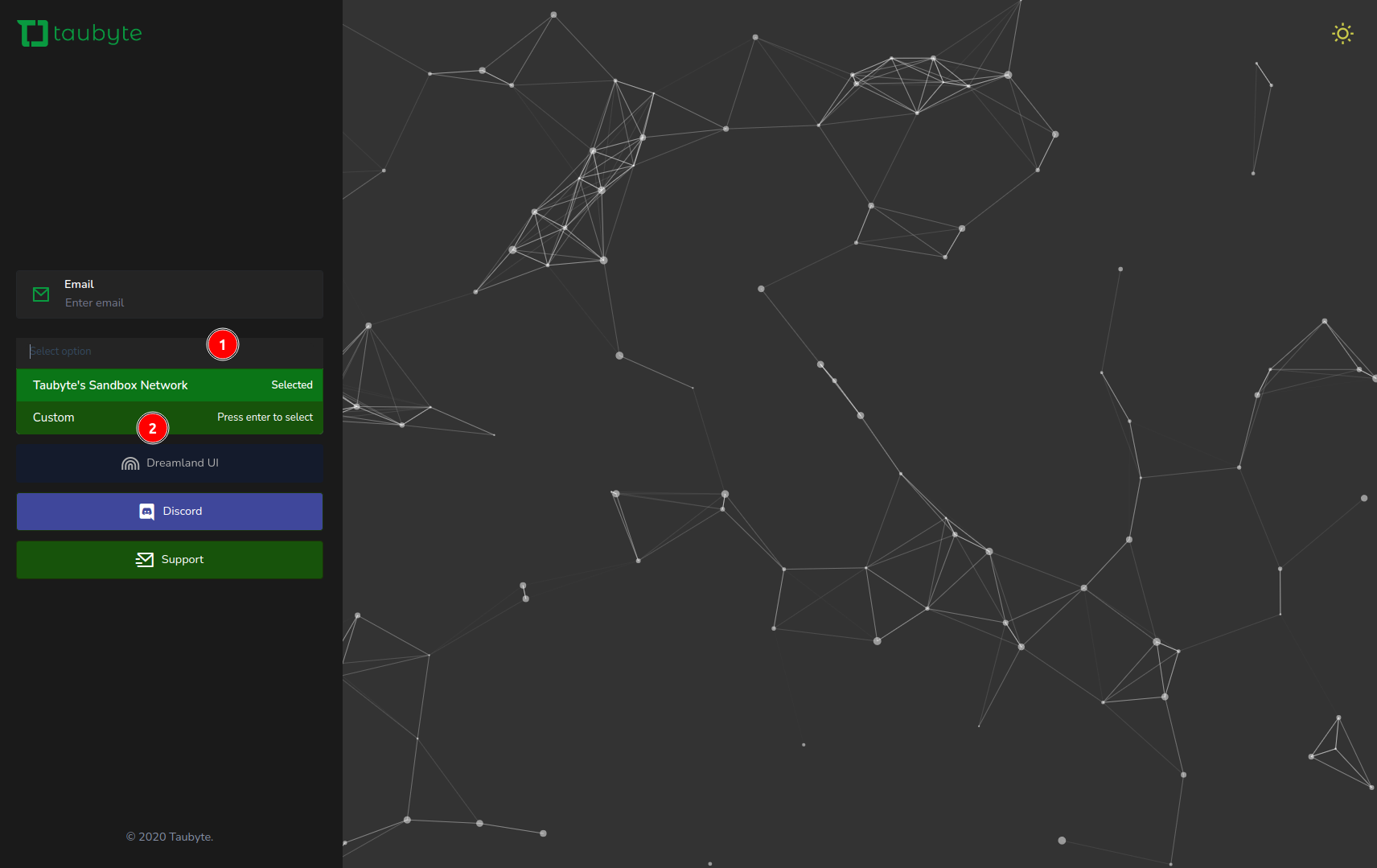 Select Network: Click on the dropdown list under the email input field, then select