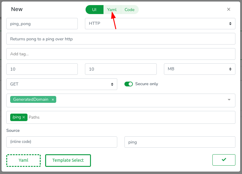 It’s worth noting that the Web Console clones your repositories in-browser, meaning there’s always a code equivalent to everything you do. Let’s review the YAML config by clicking on the Yaml tab.