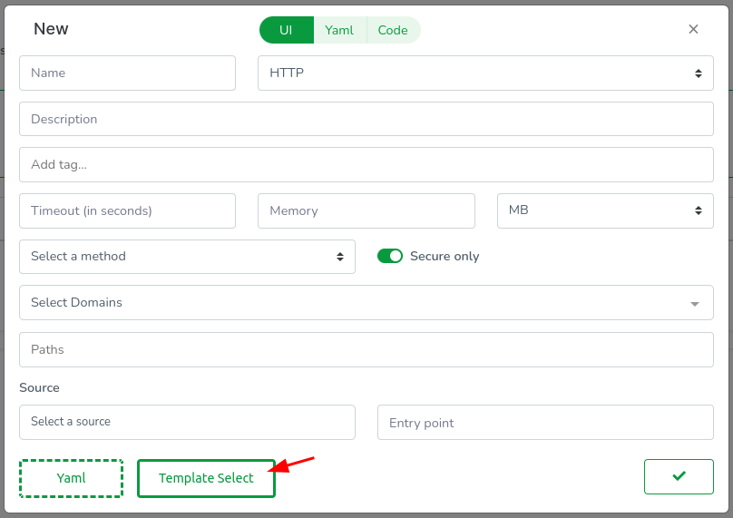 To expedite the process, we’ll use a template. Skip filling any field for now and click on the Template Select button.