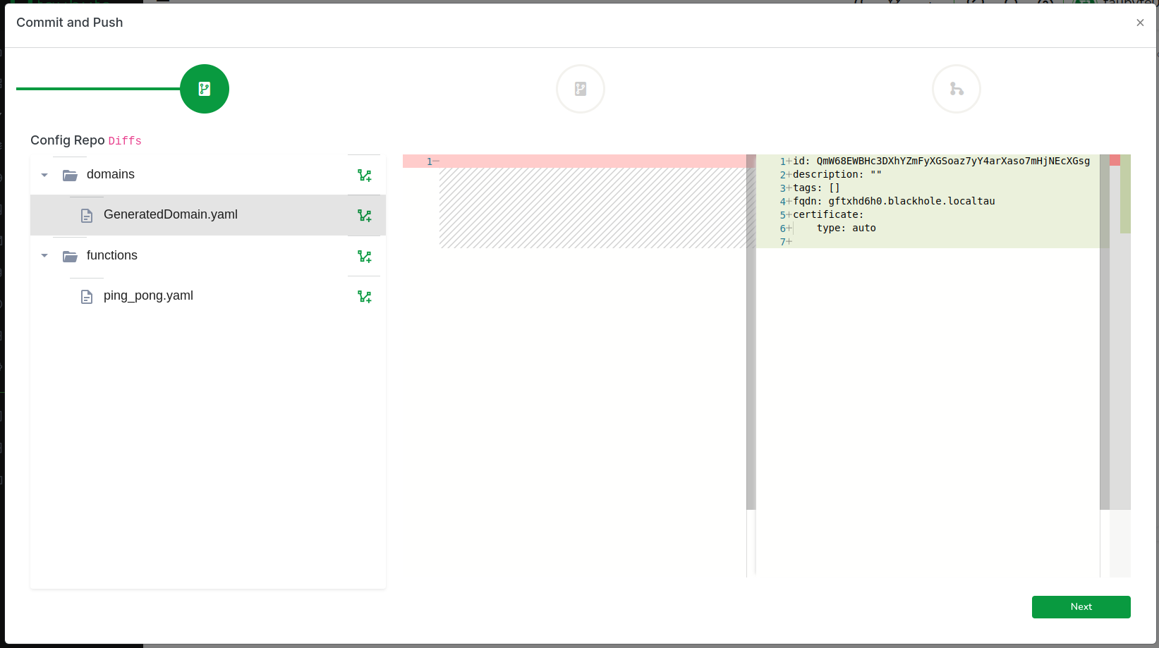 The Web Console will create two repositories: one for configuration, containing mainly YAML files, and another for inline code, containing code in different languages to be compiled to WebAssembly. If everything goes well, you’ll be directed to the dashboard.